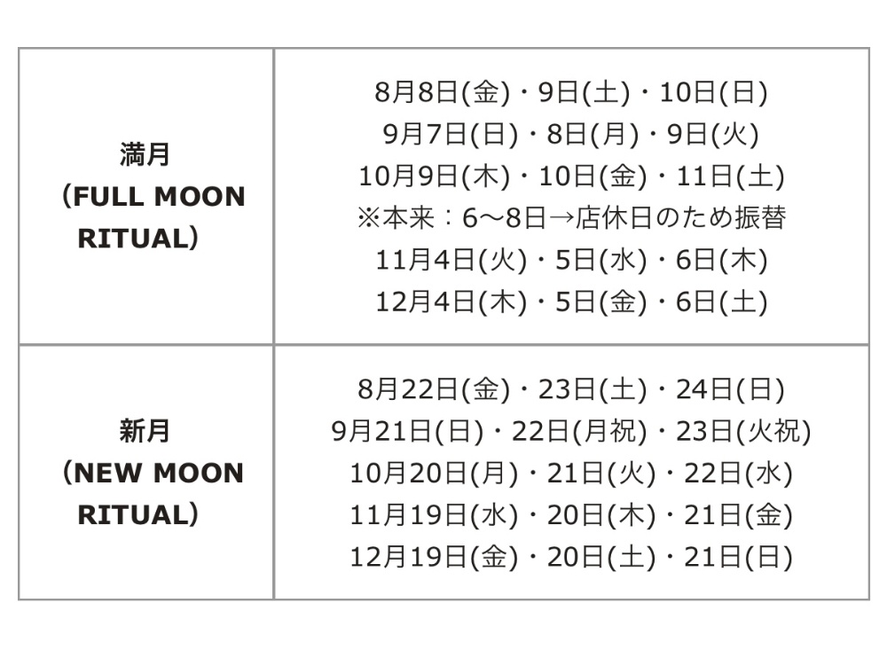 ムーンリチュアルは「満月・新月の前後3日間限定」でのご案内となります。